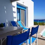 Os hóspedes podem desfrutar de uma vista para o mar para o mar de terraço na pousada Villes Rania Cárpatos, a aproximadamente 25 minutos a pé de Paralia Michaliou.